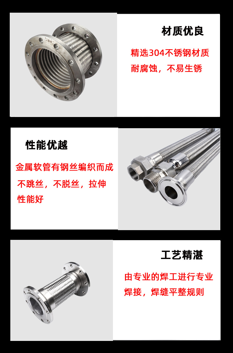 金(jīn)屬軟管大體上由波紋管、網套及接頭三大部分構成。波紋管是金屬軟管(guǎn)的本體,起著撓性的作用;,網套起著加強、屏蔽的(de)作用(yòng);接頭起著連接的作用
