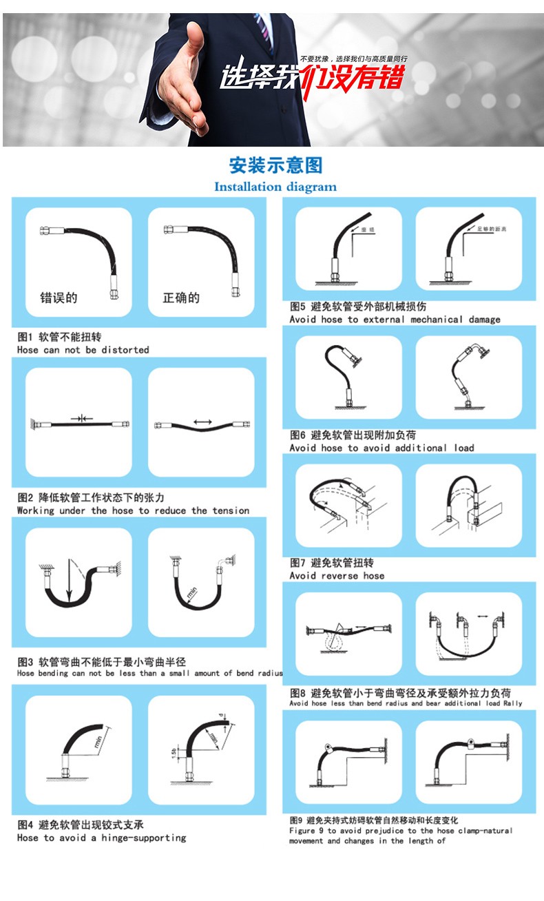 高壓鋼絲編織膠管結構主要由耐液體的合成橡膠(jiāo)內膠層、中膠層、Ⅰ、Ⅱ、Ⅲ層鋼絲編織層、耐天候(hòu)的合成橡膠外膠層組(zǔ)成。高壓鋼(gāng)絲編織膠管用途:高壓鋼絲增強液壓油管主要用於礦井液壓支架、油田開發,適宜於工程(chéng)建築、起重運輸、冶(yě)金鍛壓、礦山設備、船(chuán)舶、注塑機械、農業機械、各種機床以及各工業部(bù)門機械(xiè)化、自動化液壓係統中輸送具有一定壓力和溫度的石油基(如礦物油(yóu)、可溶性油、液壓油、燃(rán)油、潤滑(huá)油)及水基液體(tǐ)(如乳化液、油水乳濁液、水)等(děng)和液體傳動。 高壓鋼絲編織膠管規格(gé)範圍:DN6mm~DN102mm。